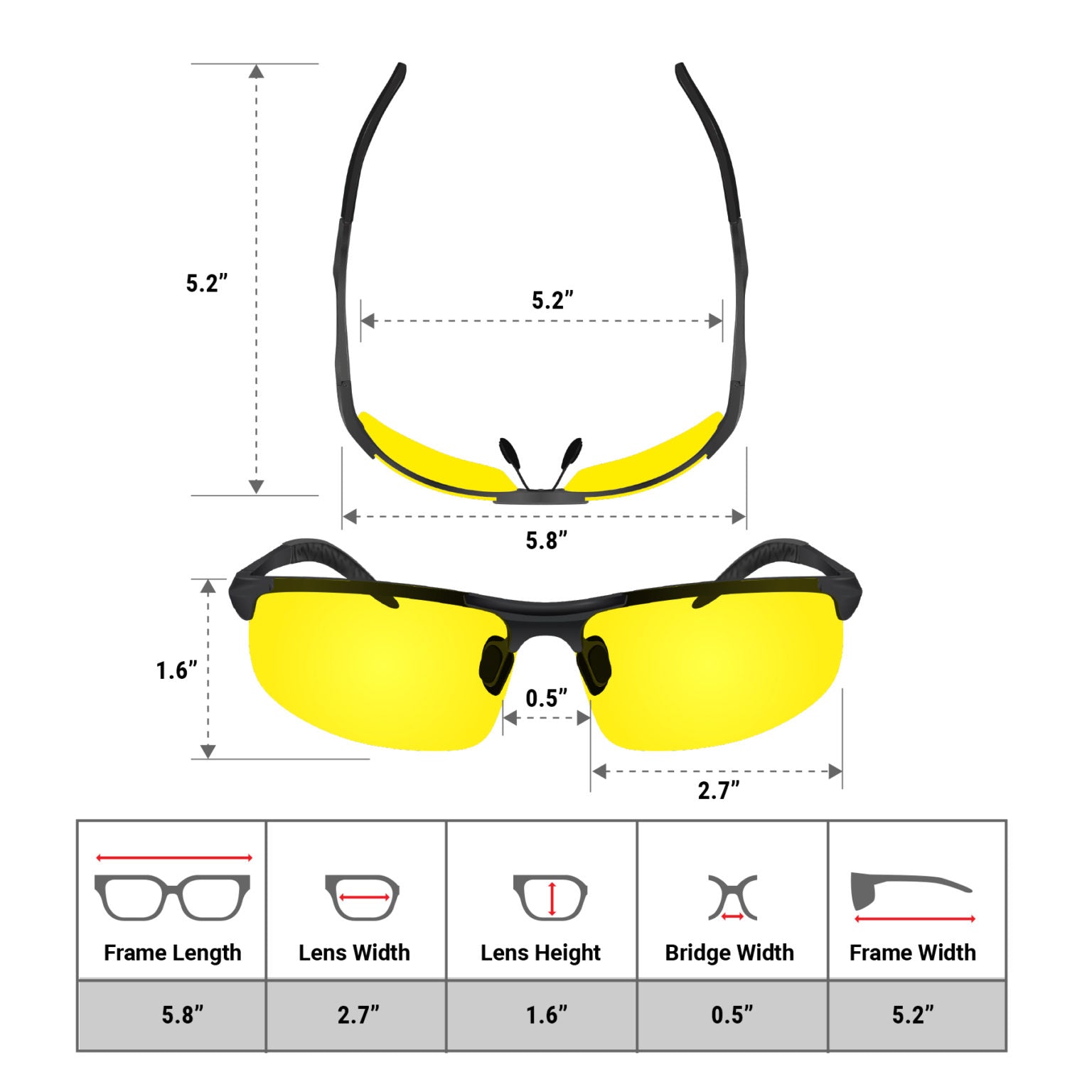 Night Driving Glasses Knight Visor Semi Rimless Frame (Black B) – BLUPOND