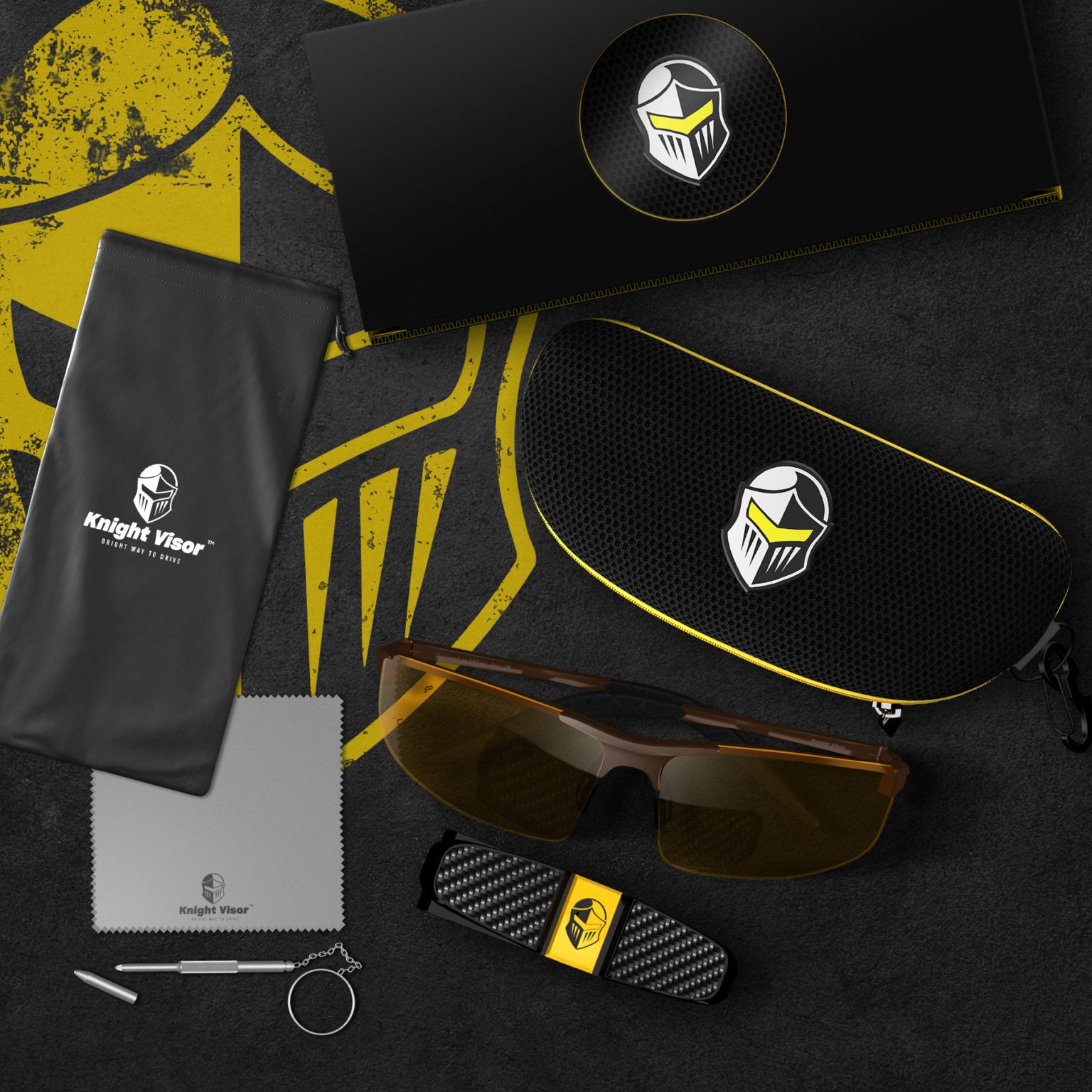 Night Driving Glasses Knight Visor Semi Rimless Frame (Brown) – BLUPOND
