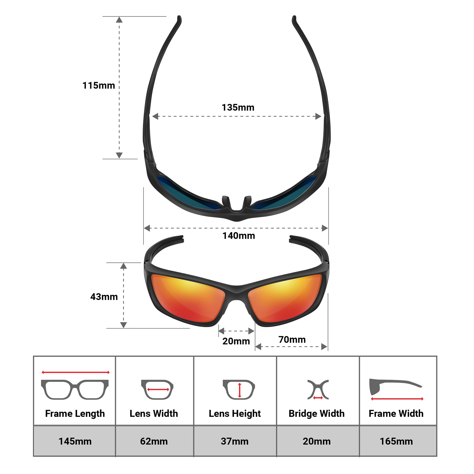 Glasses Dimensions: